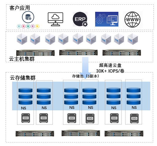 隨著數(shù)據(jù)爆發(fā)式增長,存儲模式逐漸從集中存儲向分布式存儲轉(zhuǎn)變。分布式存儲通過可擴展的系統(tǒng)結構,利用多臺服務器分擔存儲風險等,具有高靈活性、高可靠、高效率等優(yōu)勢。某運營商在實際應用中采用分布式存儲作為存儲底座,為用戶提供超高性能彈性卷服務,支撐桌面辦公、企業(yè)ERP、門戶網(wǎng)站等高性能訴求業(yè)務。如何在保證存儲系統(tǒng)高可靠、線性擴展的同時滿足快速桌面發(fā)放要求、避免啟動風暴發(fā)生及多種高性能業(yè)務場景正常運轉(zhuǎn),成為該運營商關注重點。