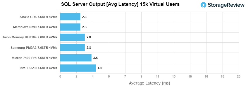 StorageReview的SQL工作負載測試包括SQL、SQL 90-10 和 SQL 80-20,這些測試在所有參與此次測試的驅動器上都顯示出相似的結果。
