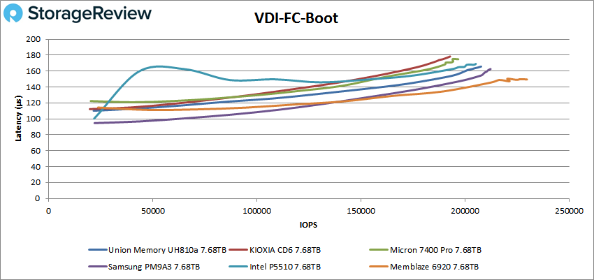 針對VDI完整克隆(FC)測試,UH810a呈現出可靠的結果,峰值為208K IOPS,延遲為164.6μs。