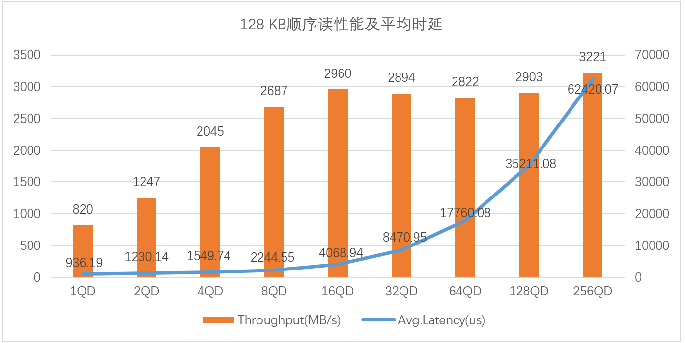 以上數(shù)據(jù)驗(yàn)證了在128KB順序讀寫中,在32QD及以下場(chǎng)景UH711a的整體性能表現(xiàn)更為突出。