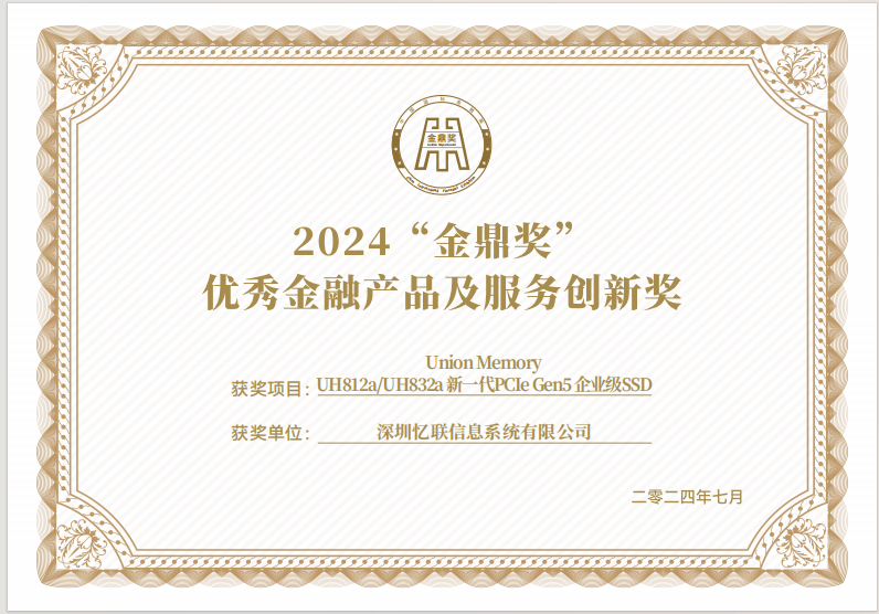 憑借領先的技術、卓越的性能,憶聯PCIe Gen5 ESSD UH812a/UH832a已先后斬獲“2024年度閃存產品創新獎”“2024金鼎獎——優秀金融產品及服務創新獎”等多個產品獎項。