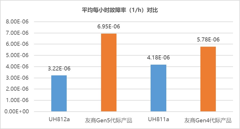 圖3:UH812a與上一代產(chǎn)品及友商平均每小時故障率對比