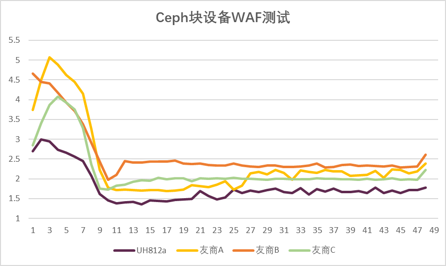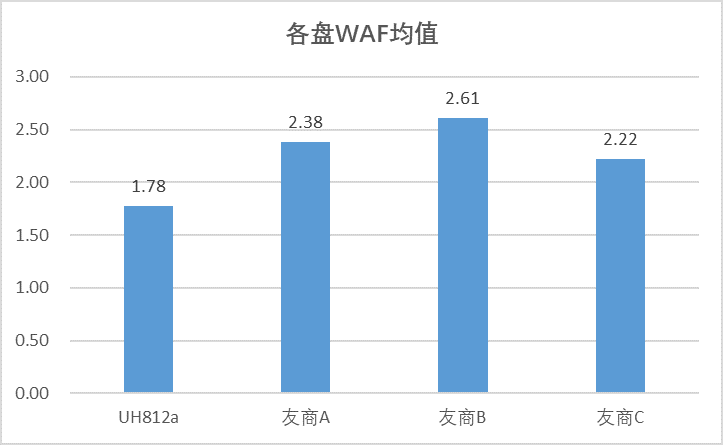 ? WAF對比:UH812a WAF平均值1.78,低于友商A 25%(2.38)、低于友商B 32%(2.61)、低于友商C 20%(2.22)。