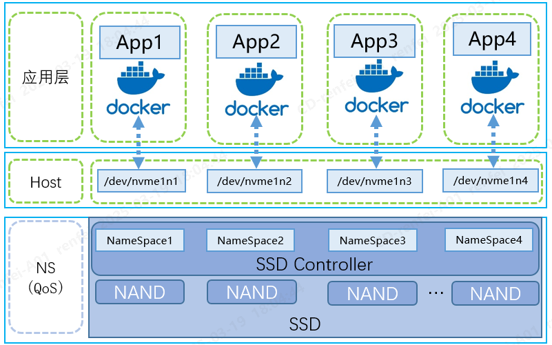相較于傳統機械硬盤,SSD憑借其高速讀寫能力和低延遲特性,不僅突破了存儲I/O瓶頸,更能與Docker輕量級容器化技術深度契合——通過減少數據存取等待時間,充分釋放存儲性能潛力,為容器化部署MySQL的高效運行筑牢存儲根基。Namespace(以下簡稱NS)作為SSD技術的重要創新,進一步突破了傳統存儲模式的性能瓶頸。NS本質上是SSD的邏輯分區技術,能夠將單塊物理SSD劃分為多個獨立的虛擬存儲單元,每個單元均可進行獨立管理和配置,有效提升SSD的利用率。在此基礎上,NS技術下配置QoSQuality of Service,服務質量)策略,能夠進一步強化存儲性能管理的精細化程度。