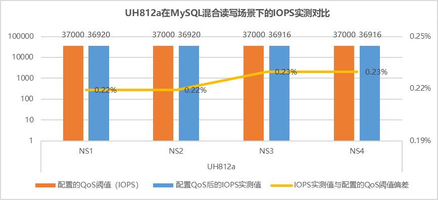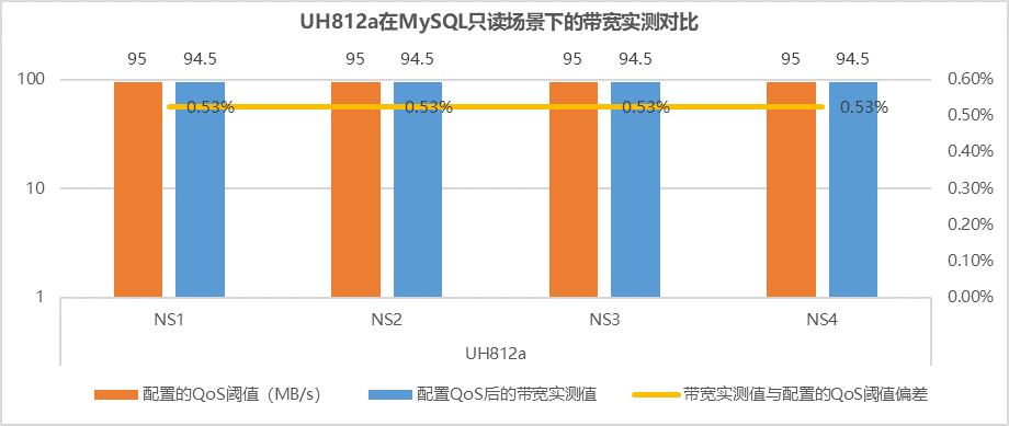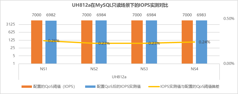 實測表明,在容器化 MySQL 環境中,無論是只讀、只寫還是混合讀寫場景,UH812a NS 技術均能精準執行 QoS 設置,提供高效穩定的性能表現,有力支撐企業數據存儲與處理需求。