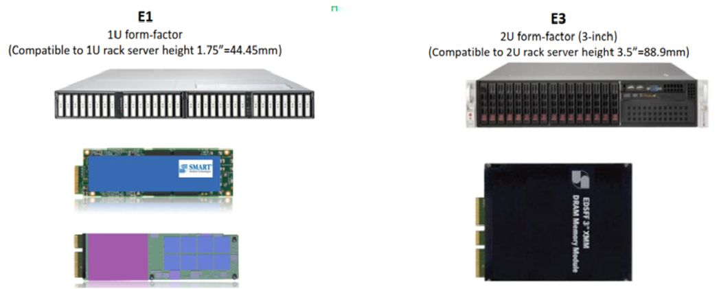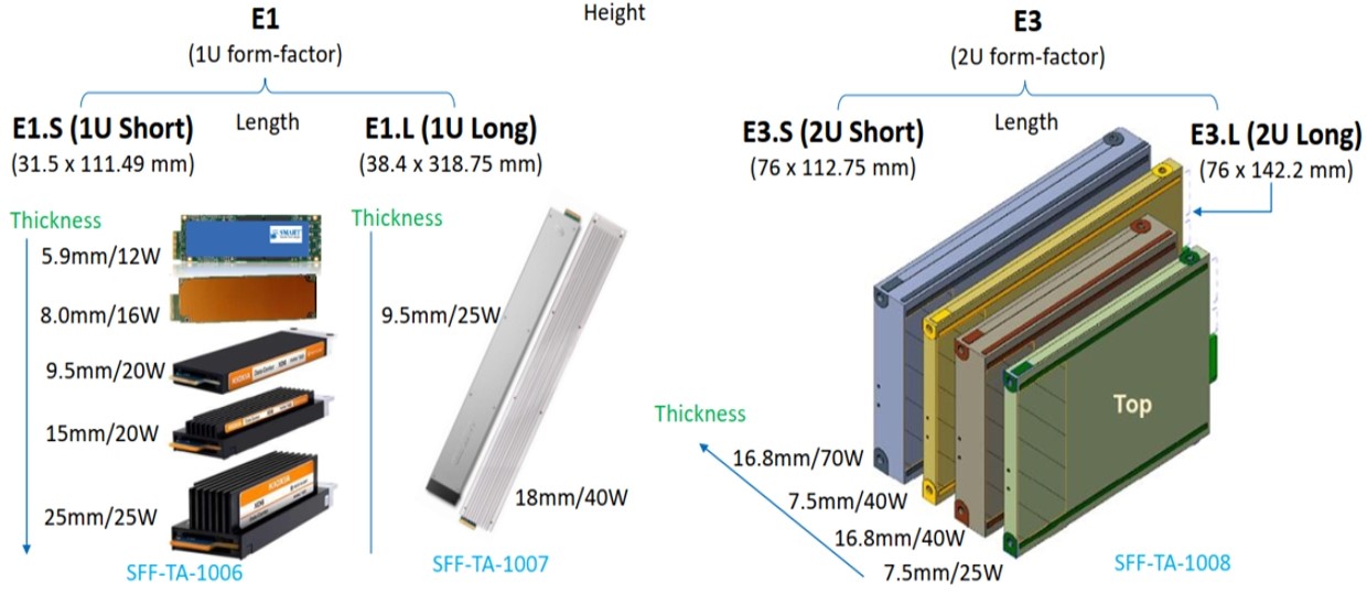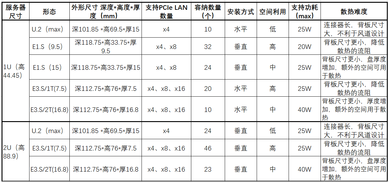 EDSFF提供了一系列企業和數據中心固態硬盤外形尺寸標準,以最大程度適配1U/2U服務器,概覽如下: