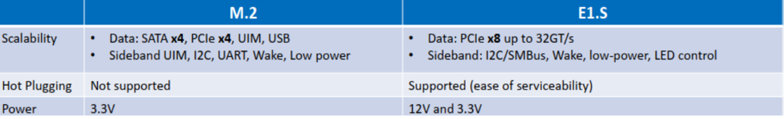 到PCIe5.0后,U.2和M.2可支持的帶寬和性能以及電氣特性上已經很難達到要求了,切換到E1.S和E3.S是必然趨勢。