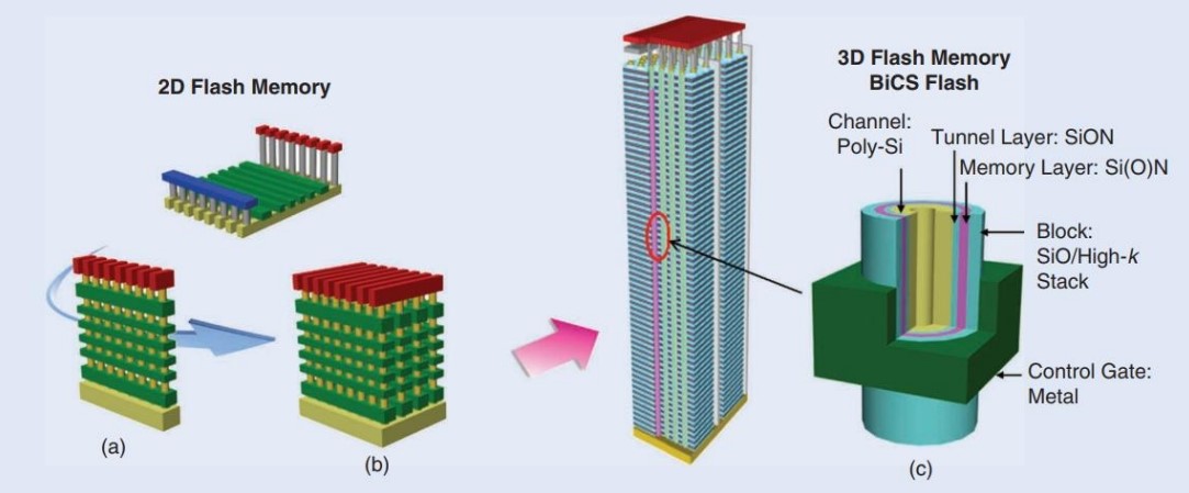 自1991年全球首個4MB NAND閃存問世,此后12MB NAND閃存、1GB NAND閃存、1GB MLC NAND閃存也相繼推出,直至2007年NAND閃存正式從2D進入3D時代。