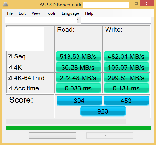 AS SSD benchmark(以下簡稱 AS SSD )是一款來自德國的 SSD 免費性能測試軟件,涵蓋持續性讀寫、單線程4KB隨機讀寫、64線程4KB隨機讀寫以及硬盤尋道時間等關鍵數據的測試,最后還會根據公式將成績標準化,能比較科學的反映固態硬盤的真實性能。