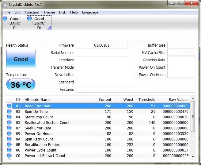 CrystalDiskInfo (以下簡稱CDI)是檢測本機固態硬盤詳細信息的工具。與CDM不同的是,CDI是查看固態狀態的軟件,CDI通過讀取S.M.A.R.T了解固態硬盤健康狀況:包括接口、轉速、溫度、使用時間等,軟件還會根據S.M.A.R.T的評分做出評估,當固態硬盤即將損壞時還會發出警報。
