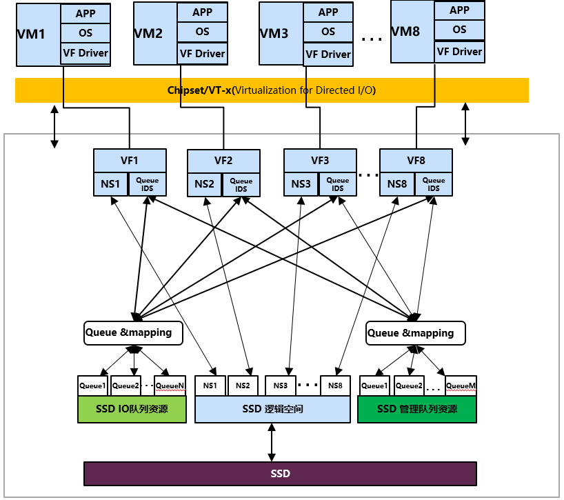 3、各 VF 之間的 IO 業(yè)務性能相互隔離,不因某一個 VF 的性能變化而導致其他 VF 性能的波動。