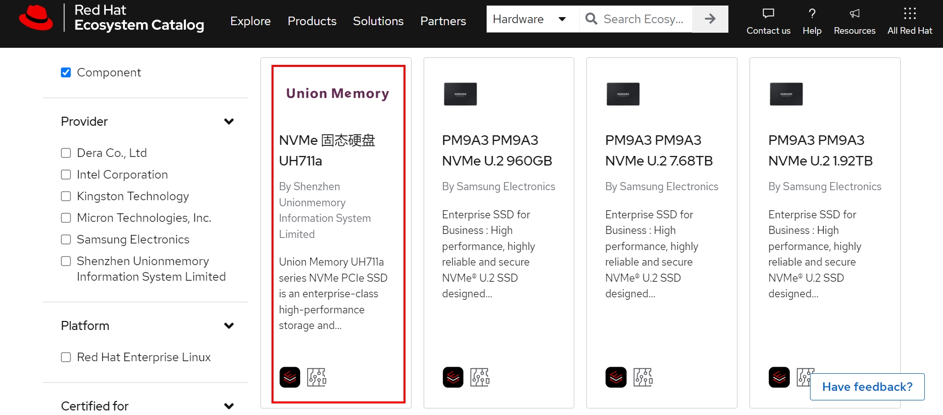 憶聯(lián)UH711a在紅帽官網(wǎng)生態(tài)適配名錄中
