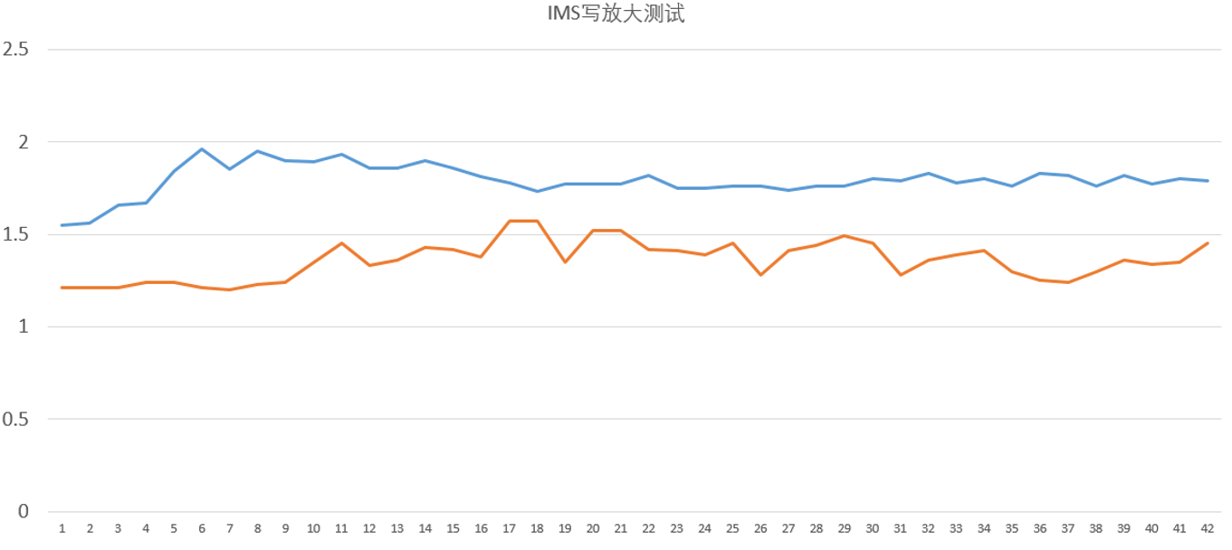 在 Ceph 方案中,基于標準 JESD 219 業務模型,針對 SSD 分別開啟、關閉智能多流進行寫放大測試,通過圖 7 對比驗證結果可以看到憶聯智能多流(IMS)開啟后,SSD 寫放大降低 20%+,極大提升了 SSD 壽命。