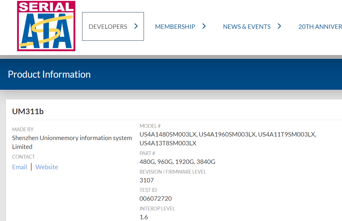 此次憶聯UM311b通過SATA-IO協議標準認證,意味著該產品完全符合最新的SATA接口規范,充分滿足客戶應用場景下的標準協議使用需求。目前,憶聯UM311b已被正式收錄進SATA-IO官網中的集成商列表中。