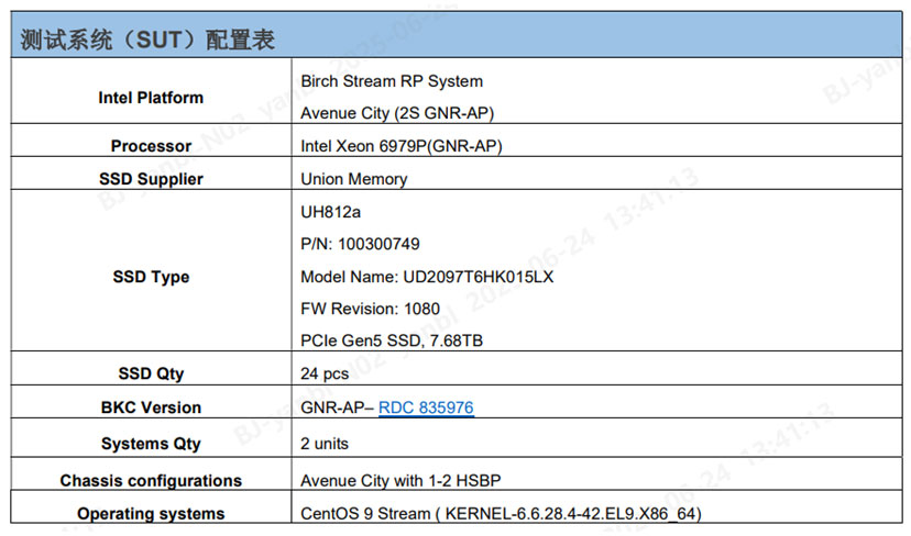 以下是本次憶聯(lián)UH812a在Intel Birch Stream平臺(tái)上進(jìn)行性能測試的相關(guān)配置詳情。