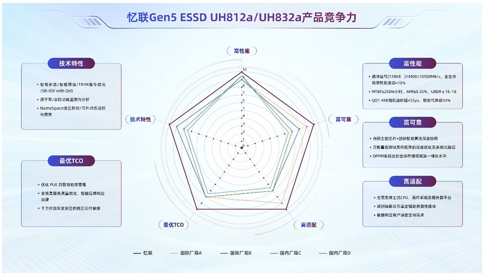 近日,憶聯(lián)新一代 PCIe 5.0 企業(yè)級 SSD UH812a 成功通過英特爾數(shù)據(jù)中心與人工智能事業(yè)部(DCAI)中國區(qū)關(guān)鍵組件驗(yàn)證計(jì)劃的性能基準(zhǔn)測試,成為首家通過該驗(yàn)證的國產(chǎn)存儲(chǔ)廠商。測試結(jié)果顯示,UH812a 在關(guān)鍵性能指標(biāo)上顯著領(lǐng)先于同代際主流競品,其卓越的性能與穩(wěn)定性充分釋放了 PCIe Gen5 高速總線及平臺(tái)內(nèi)存帶寬潛力,同時(shí)有力印證了憶聯(lián)與英特爾在數(shù)據(jù)中心存儲(chǔ)領(lǐng)域的深度合作成果。