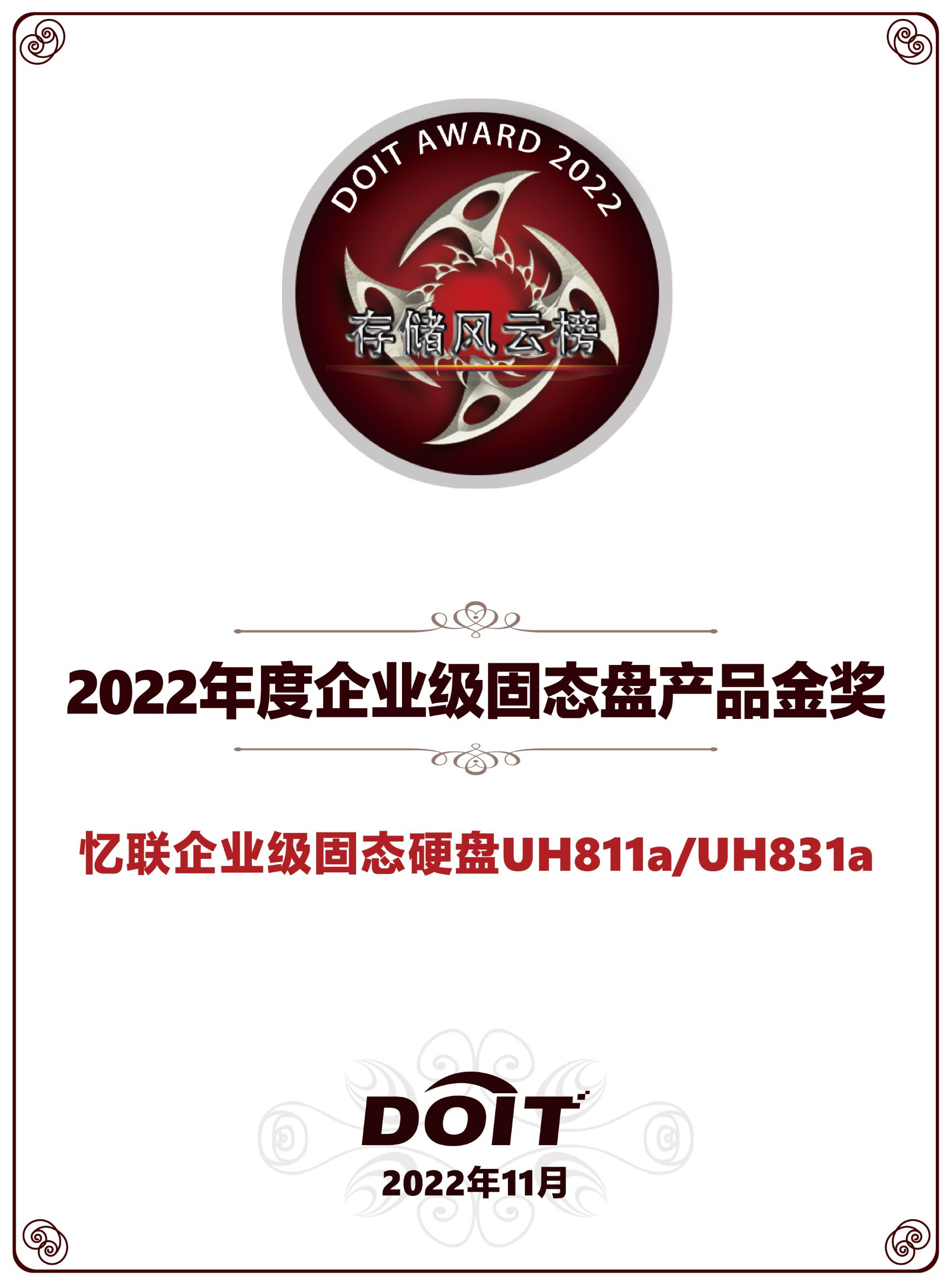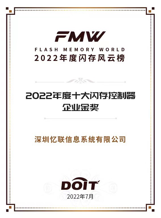 2022年憶聯獲得了“十大閃存控制器企業”金獎、第十屆中國電子信息博覽會創新獎、2022ODCC“閃耀之選”推薦產品、ODCC優秀合作伙伴、2022年度企業級固態硬盤產品金獎、2022年度閃存控制器金獎、2022年度最佳存儲芯片獎等眾多獎項,憶聯能從眾多參選企業中角逐勝出,是行業市場對憶聯及產品實力的最佳肯定。