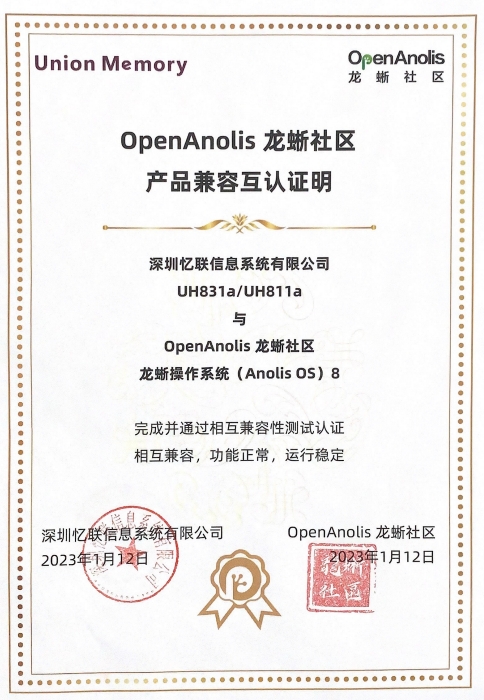 憶聯與龍蜥(Anolis OS)8完成產品兼容互認證