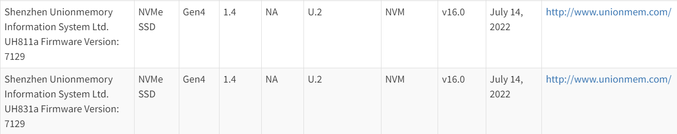 NVMe? Integrator's List 包含有關(guān) UNH-IOL 在 NVMe 測試期間或通過實驗室測試預(yù)約執(zhí)行了互操作性和一致性測試的 NVMe 產(chǎn)品信息。下圖是憶聯(lián)SSD產(chǎn)品在NVMe? Integrator's List中的數(shù)據(jù):