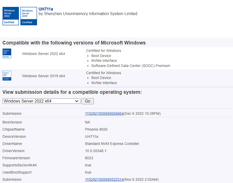 繼去年憶聯(lián)企業(yè)級SSD UH811a/UH831a通過微軟WHQL認證之后,憶聯(lián)旗下數(shù)據(jù)中心級固態(tài)硬盤UH711a經(jīng)過微軟中國技術(shù)中心的各項嚴格測試,也已正式通過了微軟WHQL認證。標(biāo)志著憶聯(lián)UH711a與Windows操作系統(tǒng)可以達到100%兼容,可充分保障產(chǎn)品在計算機系統(tǒng)中的穩(wěn)定性。