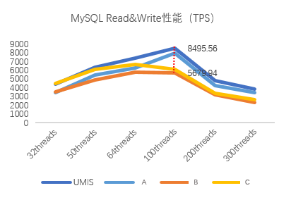 圖5:MySQL混合讀寫場景下憶聯(lián)SSD與友商性能對(duì)比
